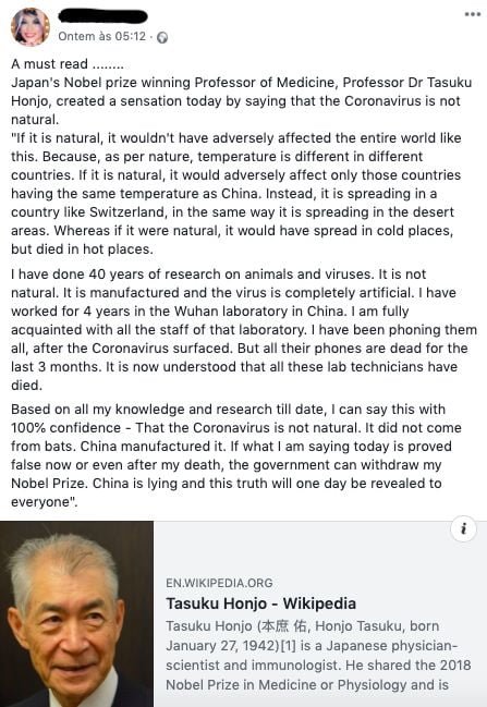 Circula pelas redes sociais uma mensagem atribuída ao ganhador do Prêmio Nobel…